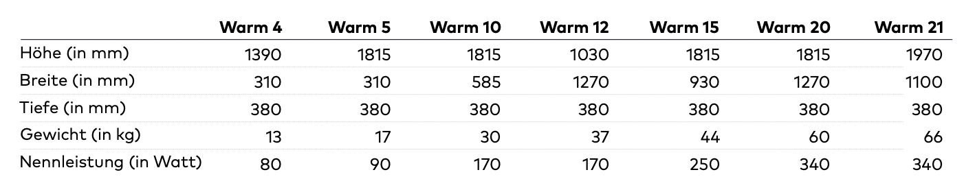 Technische Details der WARM Serie